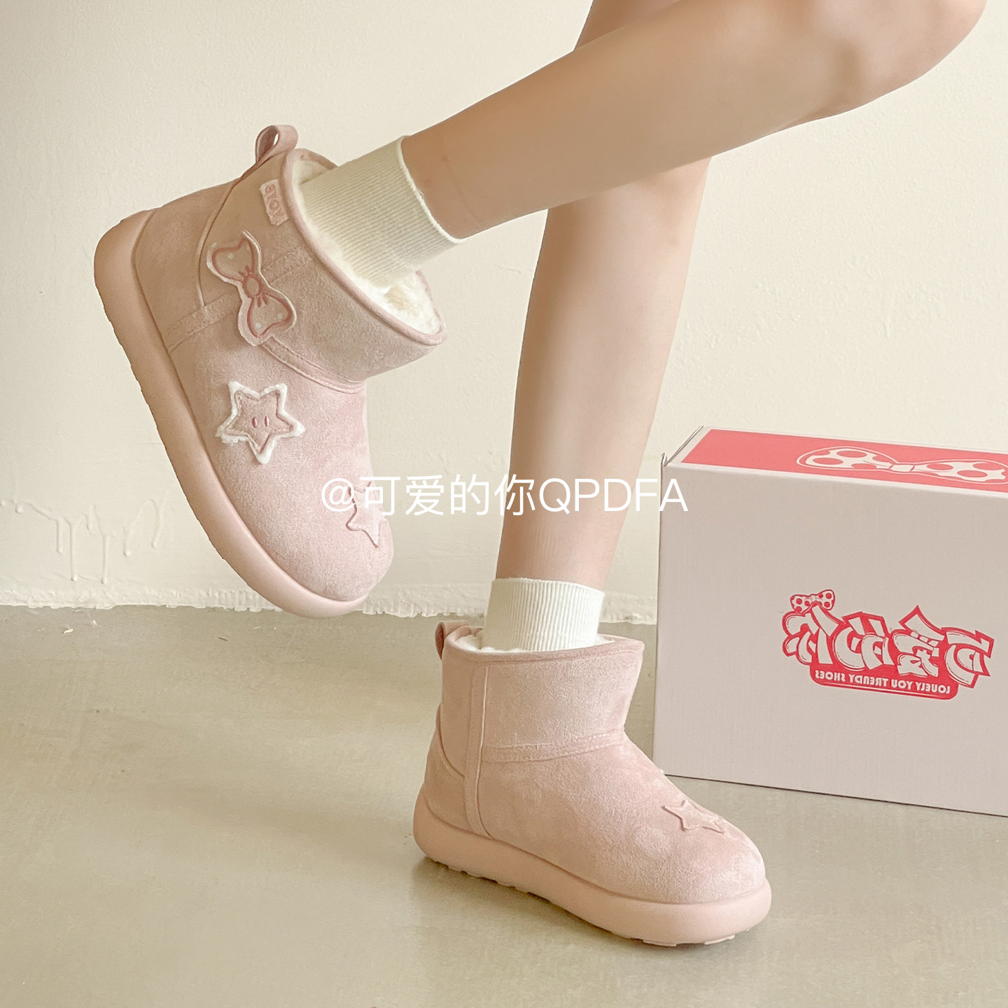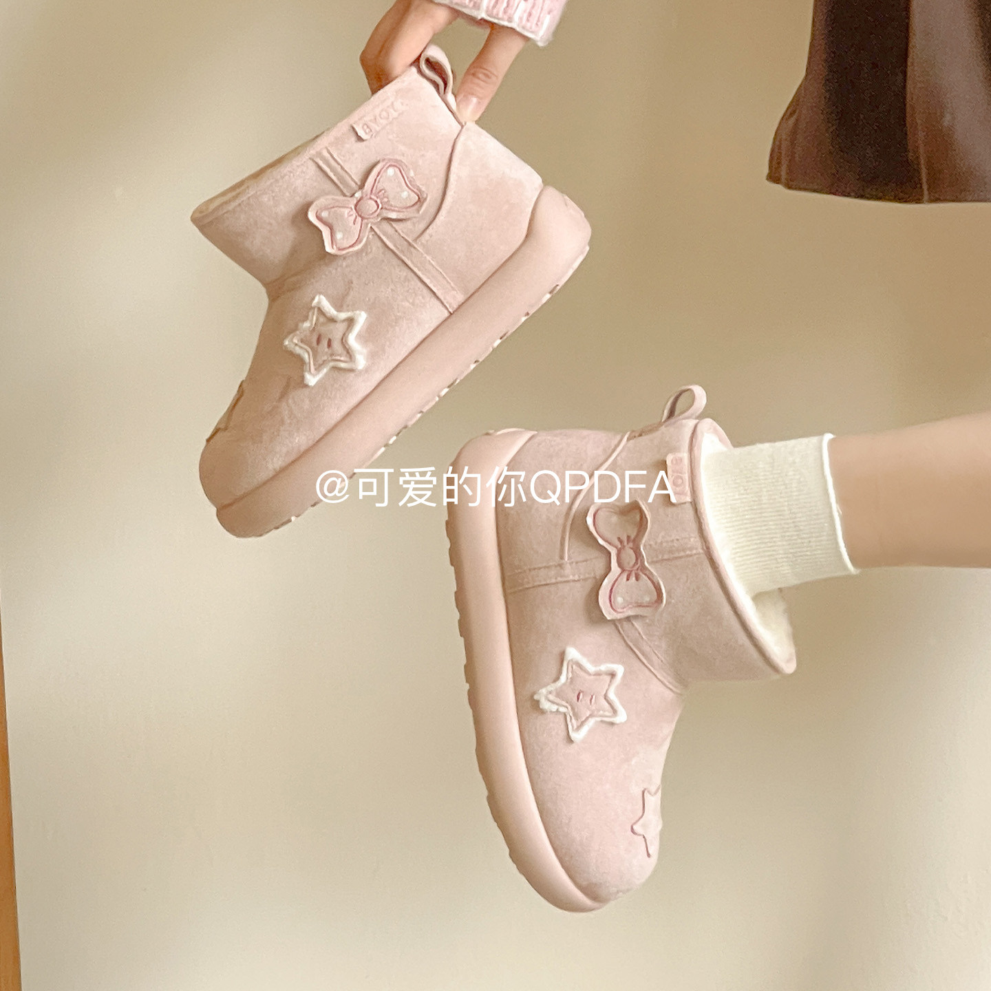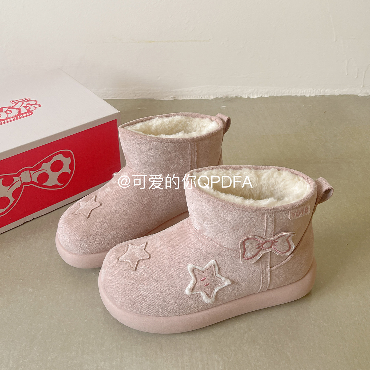 📚 可爱的你厚底毛毛雪地鞋女款2025新款冬季保暖加绒棉鞋休闲二棉鞋