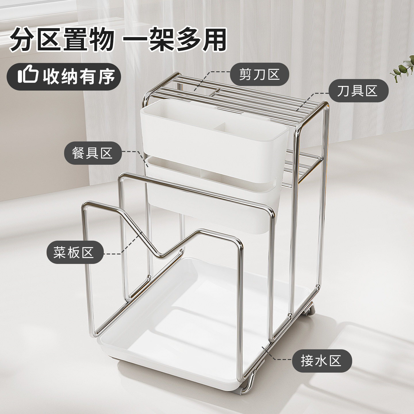📚 刀架304不锈钢厨房多功能菜刀筷子菜板架一体砧板刀具收纳置物架