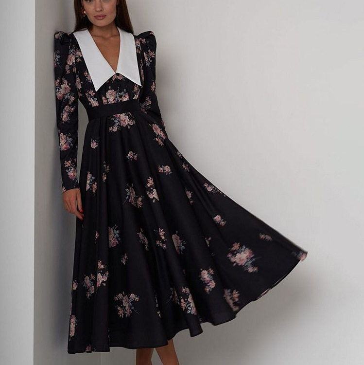 📚 Women Dresses Elegant Print复古印花大摆连衣裙气质修身长裙