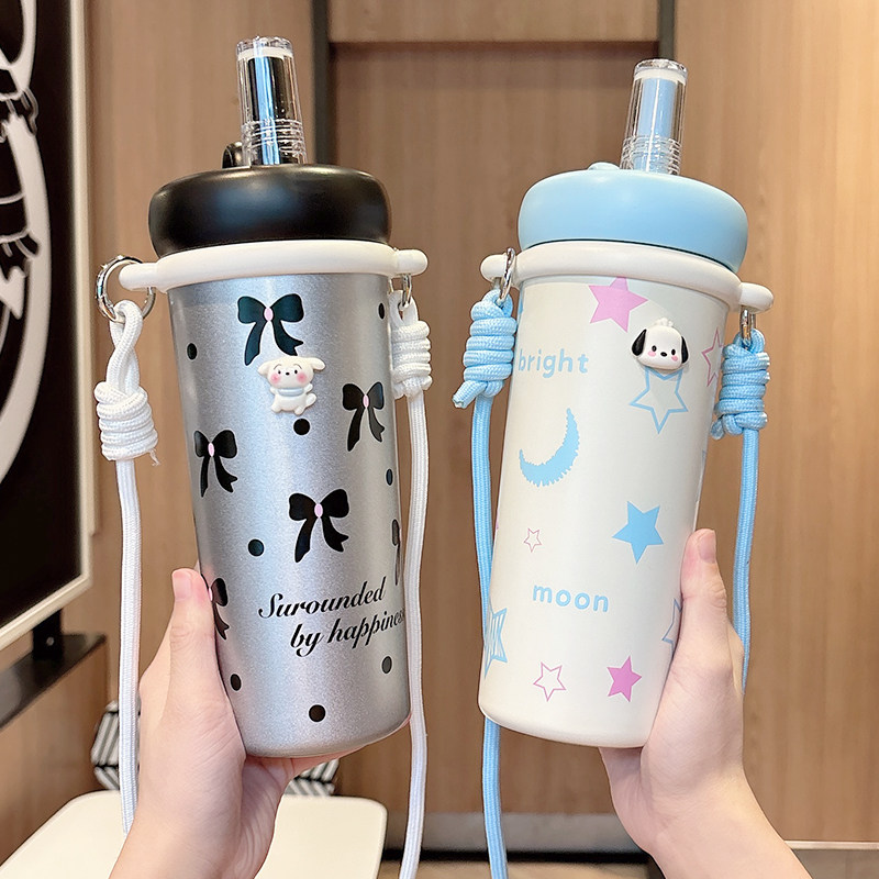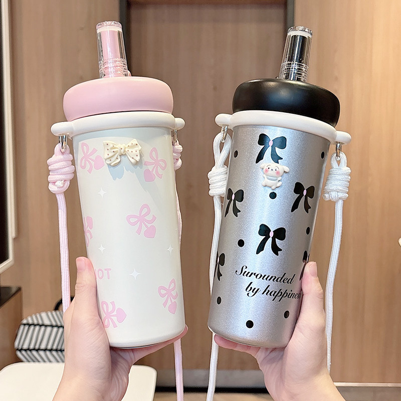 📚 保温杯女高颜值少女心吸管杯子水杯带茶隔学生大容量背带便携杯子