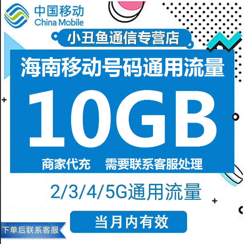 📚 海南移动流量充值10GB国内通用流量包3G4G5G流量叠加油包当月有效
