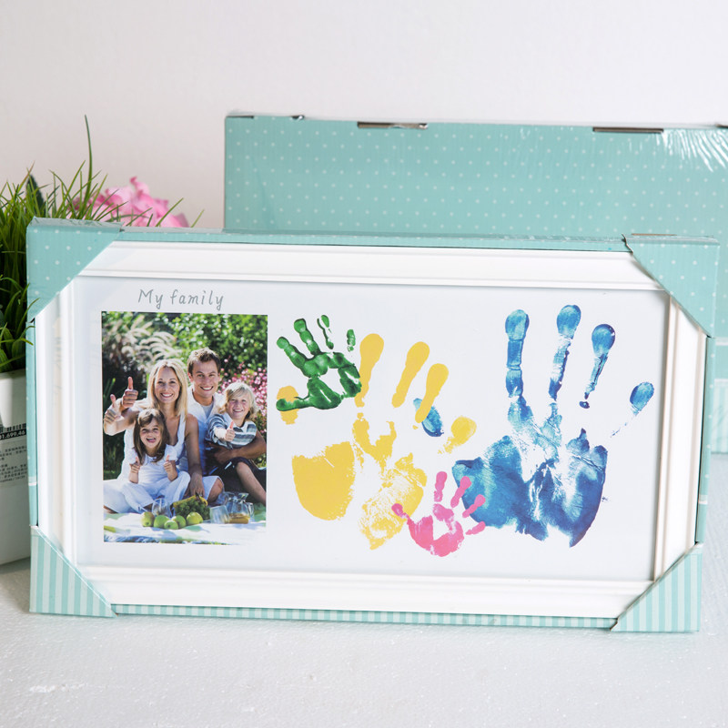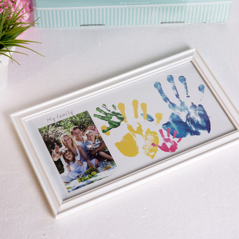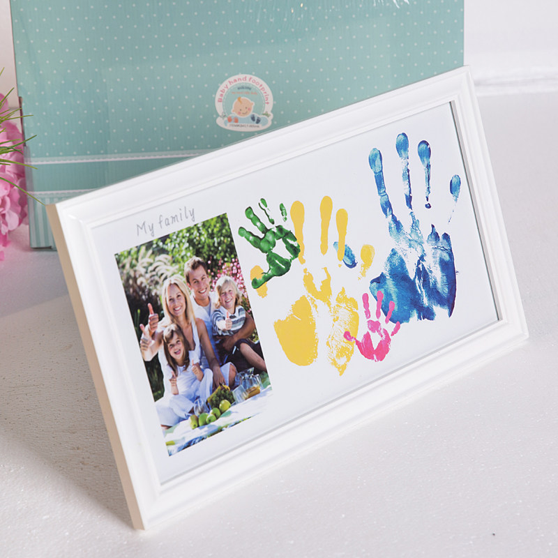 📚 全家福宝宝彩色手脚印实木创意相框摆台婴儿新生百天周岁纪念礼物
