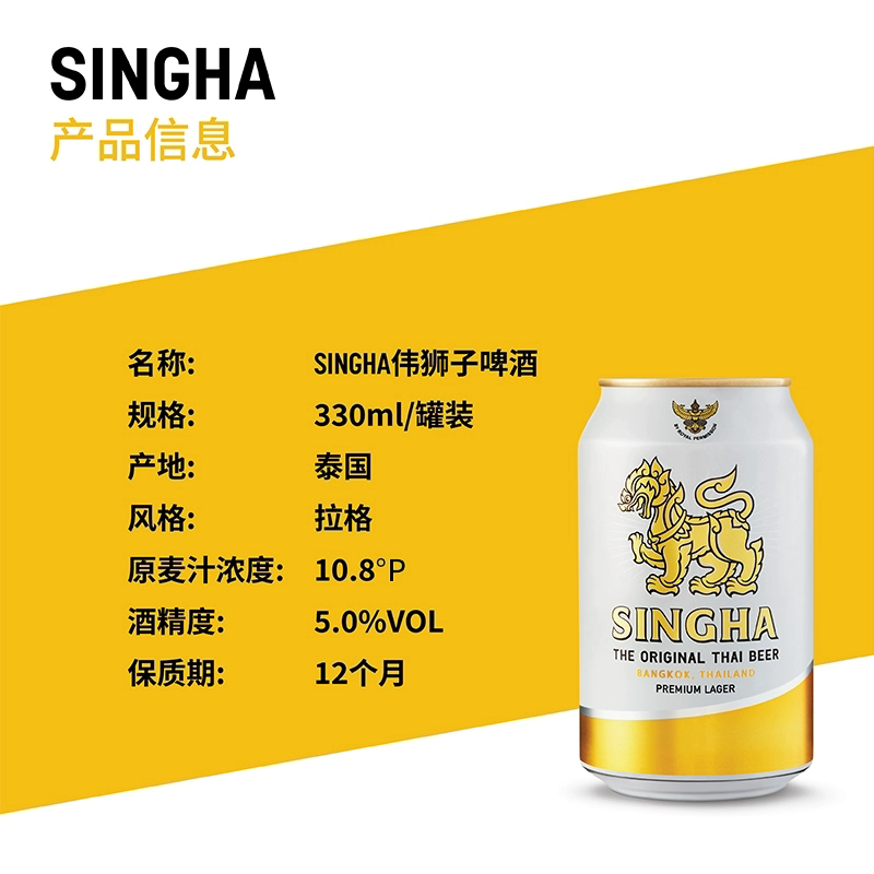 📚 Singha泰国胜狮330mL*24听伟狮拉格啤酒原装进口正品批发团购
