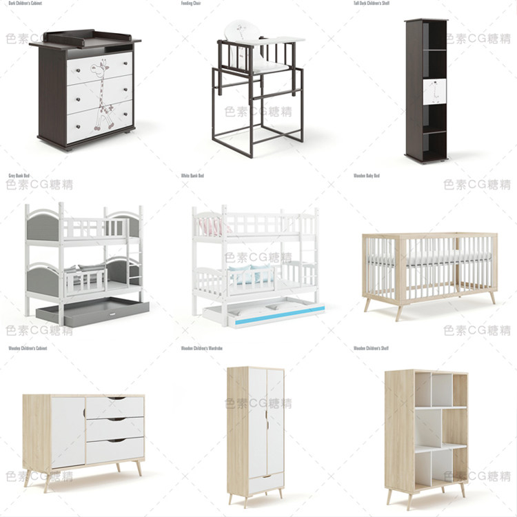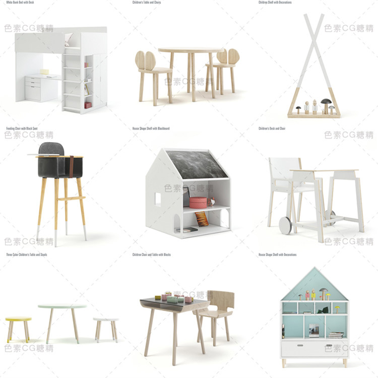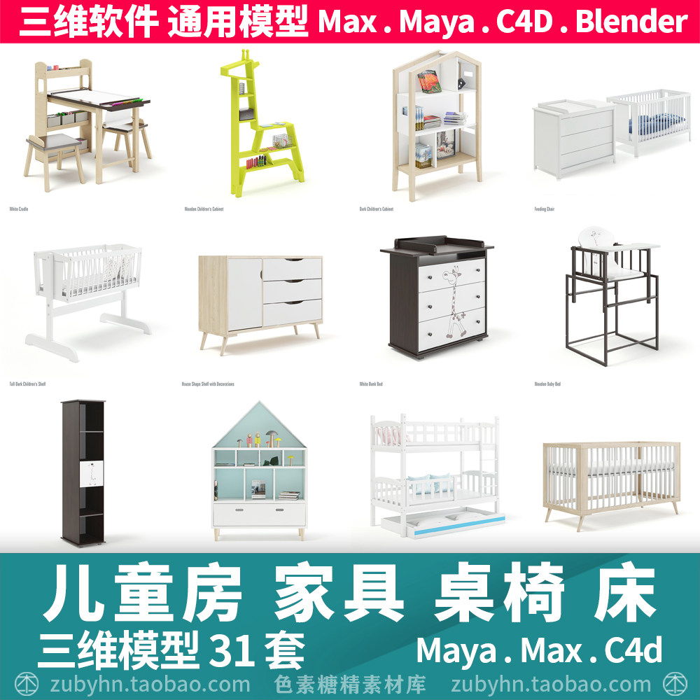📚 儿童房家具玩具单人双层床书桌橱餐椅衣柜3d三维模型maya3dmaxc4d