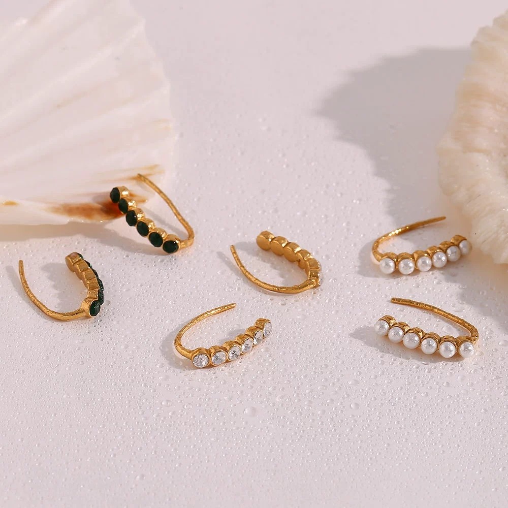 📚 欧美ins摩登简约潮流耳圈耳钉饰品 不锈钢单侧镶锆鱼钩造型耳环女