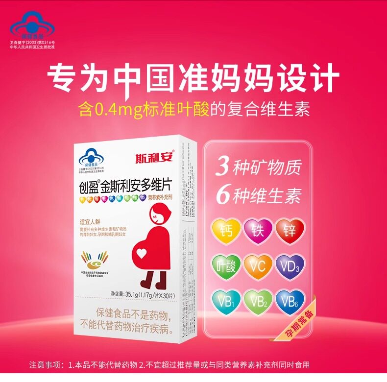 📚 斯利安叶酸孕妇叶酸片女士金斯利安多维片备孕孕期哺乳复合维生素