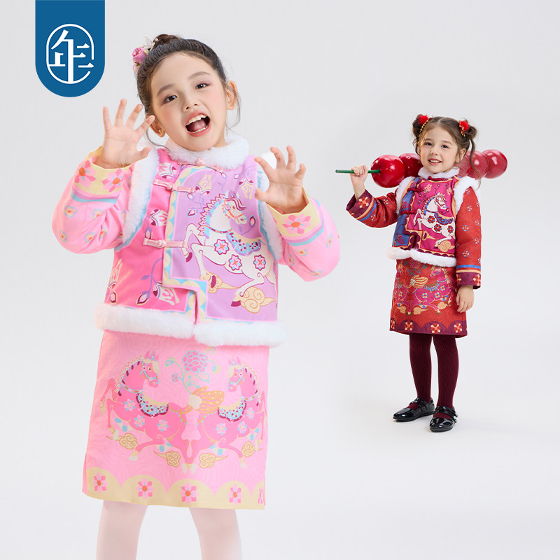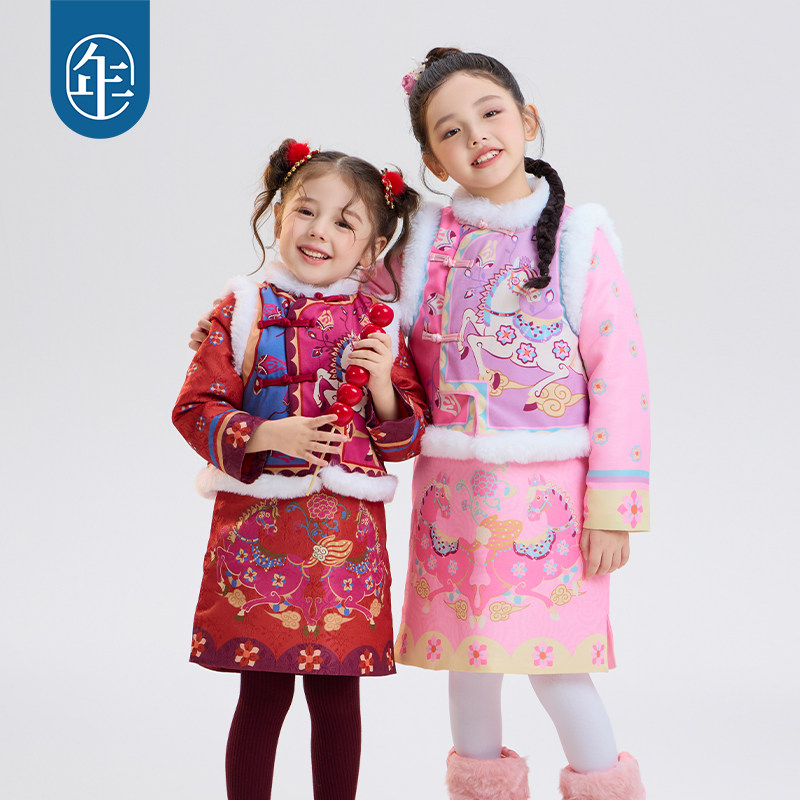 📚 年衣童装马褂套装女童冬季儿童中式唐装汉服外套加厚生肖拜年服