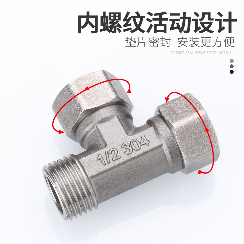 📚 304不锈钢活接三通接头热水器双内丝外丝直接4分活结弯头水管配件