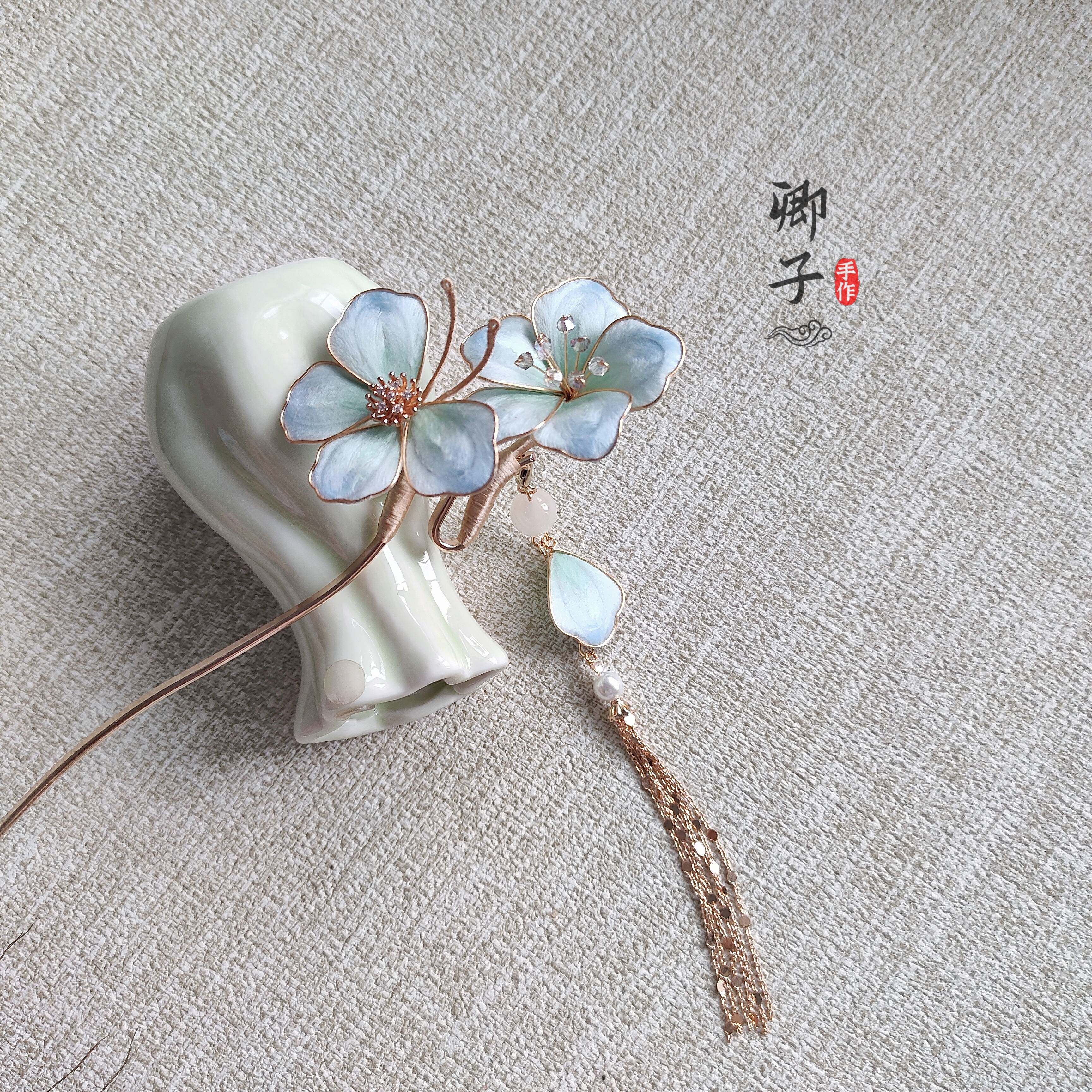 📚 『问蝶』卿子手作原创设计非遗绒花蝴蝶汉服发簪古风头饰步摇流苏