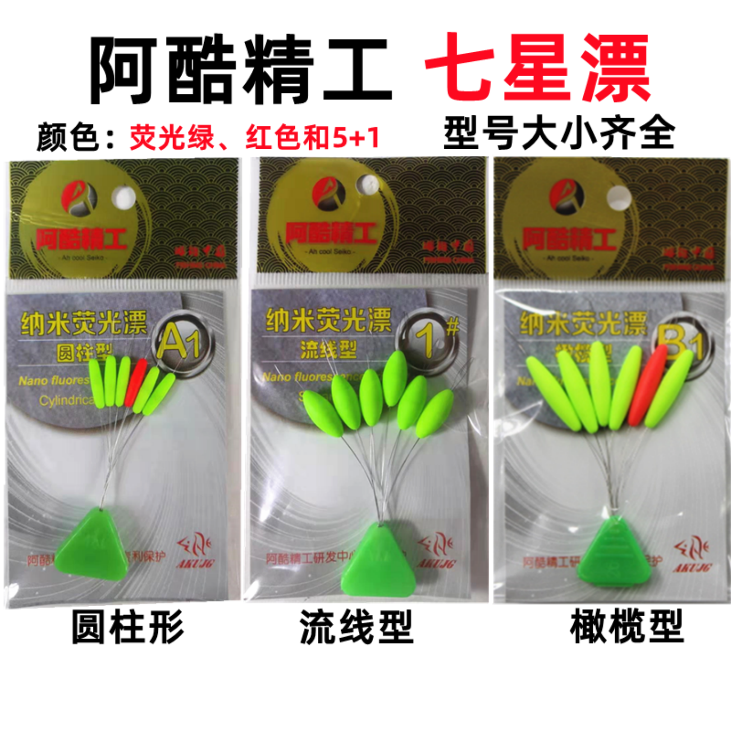 📚 正品阿酷精工荧光绿流线型圆柱形橄榄七星漂鱼漂传统钓鱼浮漂浮子