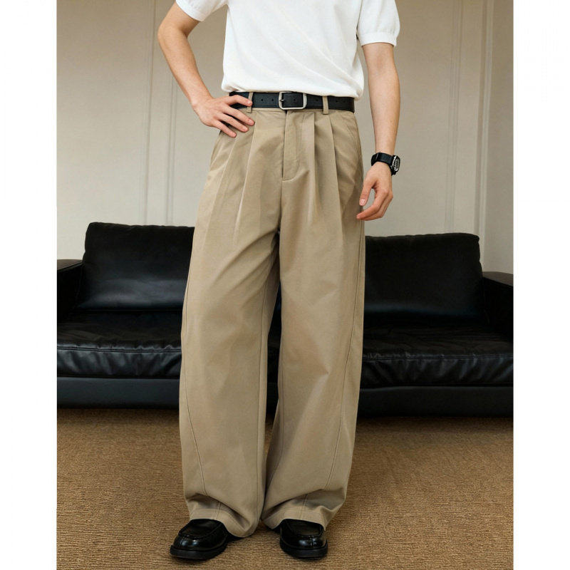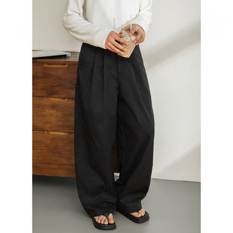 📚 south life春夏立体分割结构腰部打褶休闲裤纯色廓形宽松直筒长裤