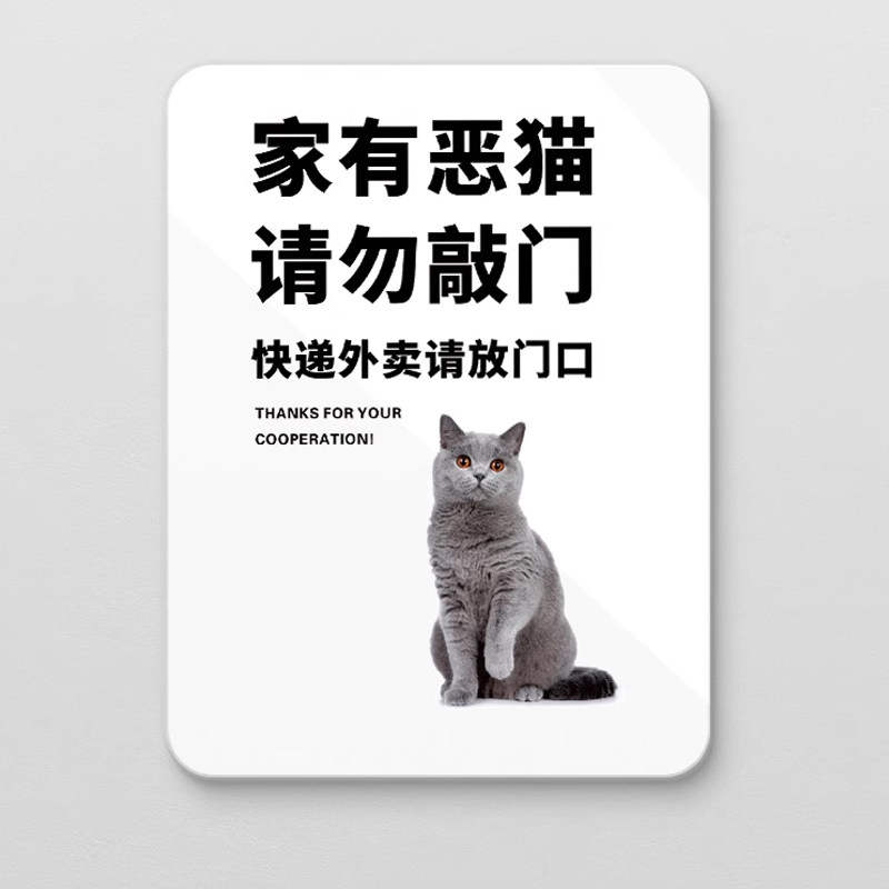 📚 亚克力家有恶喵不要敲门创意可爱门牌定制快递外卖请放门口存放处指示标牌宝宝在睡觉请勿电话温馨提示标识牌