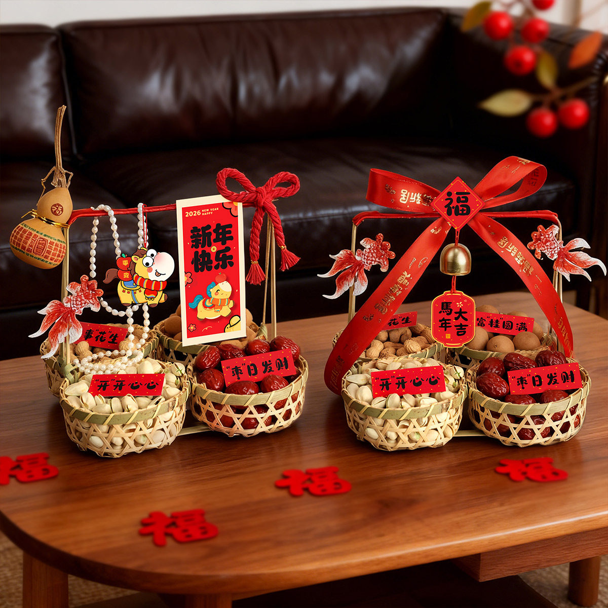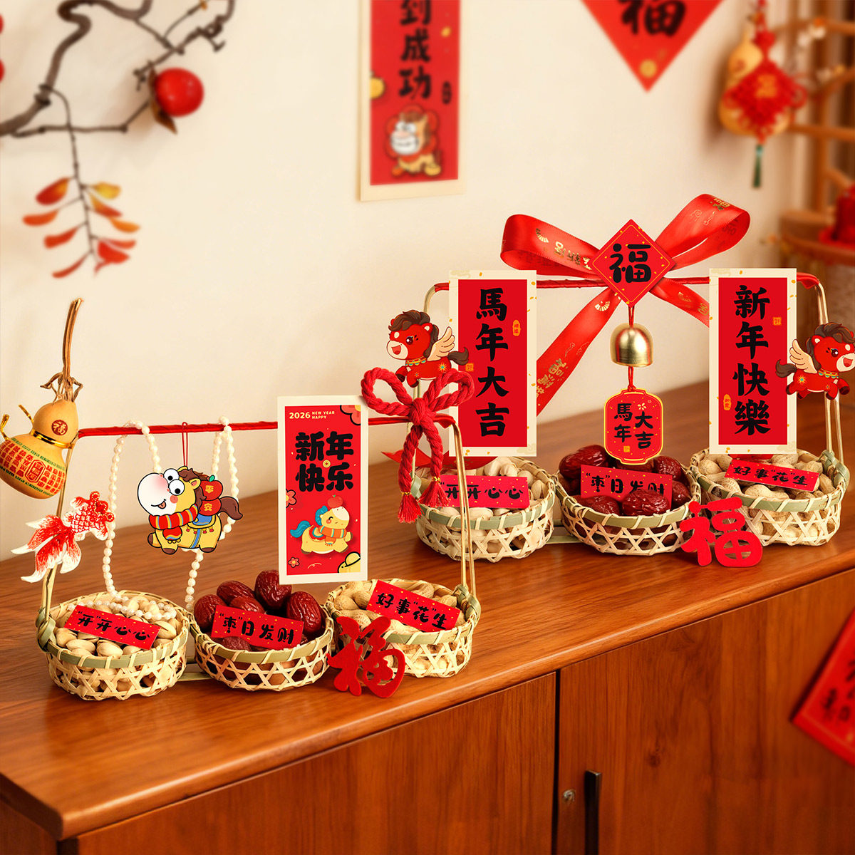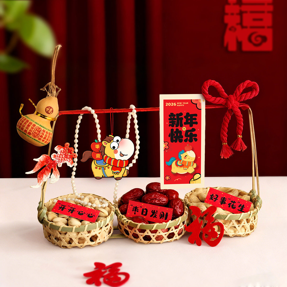 📚 2026新年手提篮干果盘创意摆件春节马年用品家用年货喜庆氛围布置