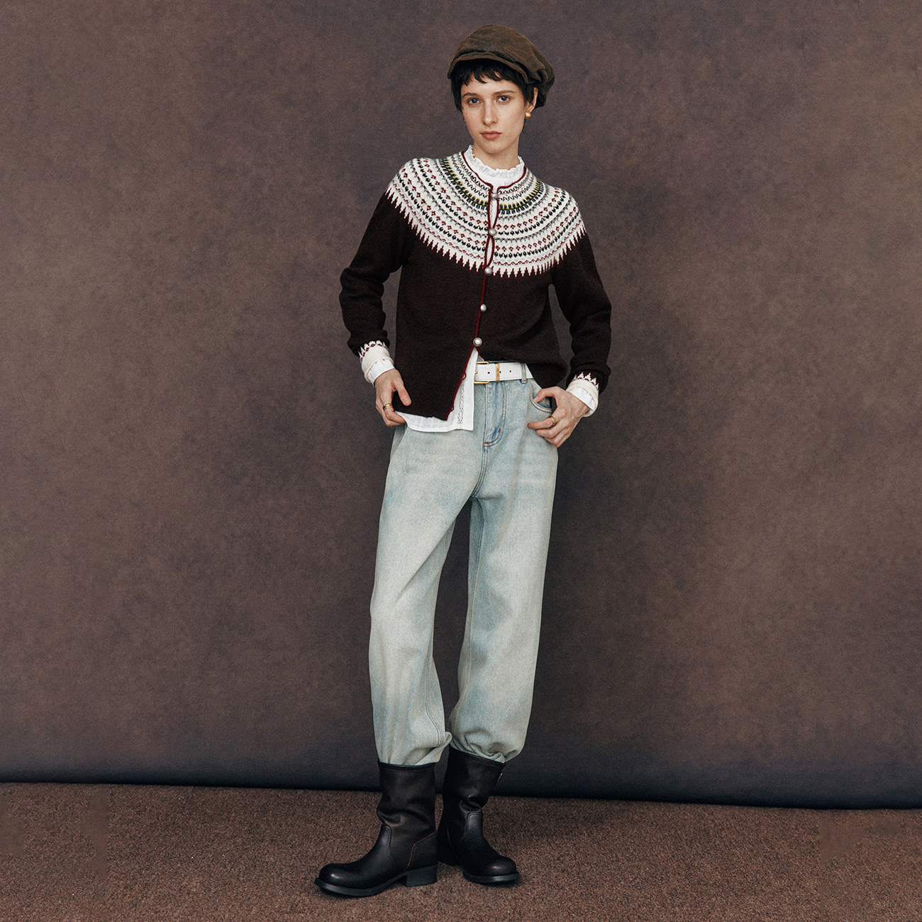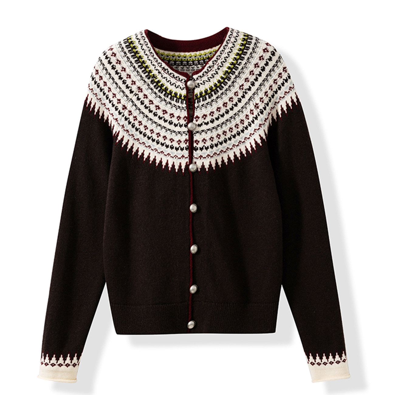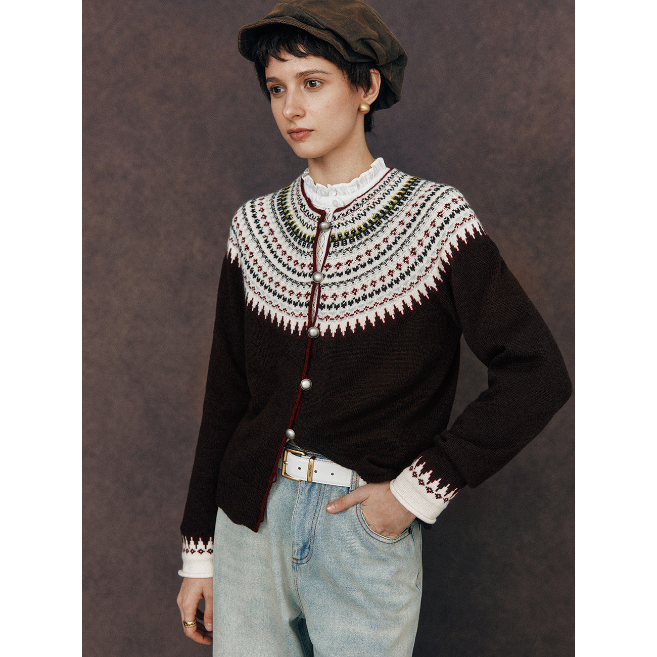 📚 【冬日浪漫旋律】羊毛混纺纱线 费尔岛几何提花圆领长袖针织衫
