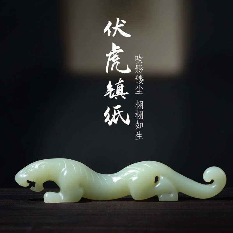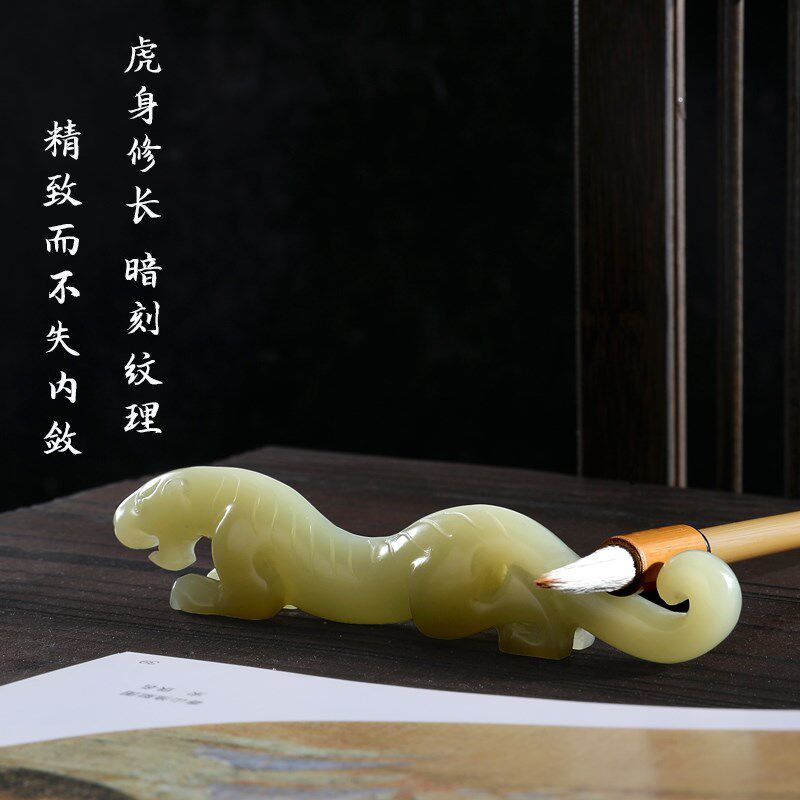 📚 镇纸镇尺笔搁毛笔书法专用玉石原石压纸镇纸尺创意国潮伏虎镇纸文