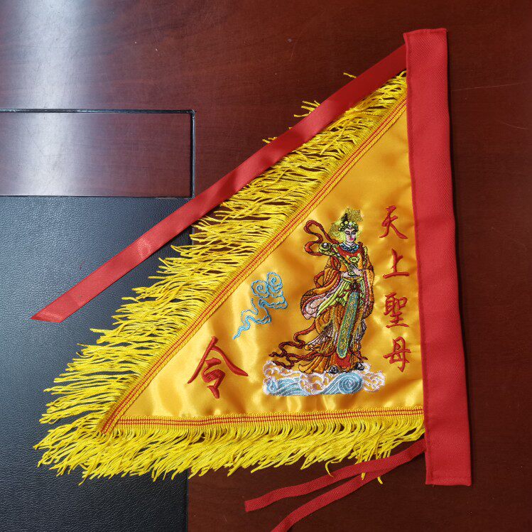 📚 天上聖母令旗湄洲妈祖烧香拜佛进香旗双面绣定制13寸天后旗帜