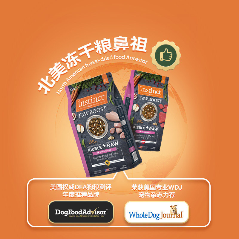 📚 [尝鲜装]Instinct天然百利狗粮进口冻干双拼鸡肉小型犬狗粮1.8kg