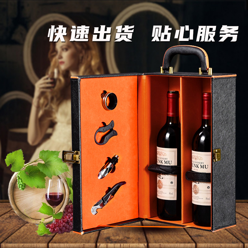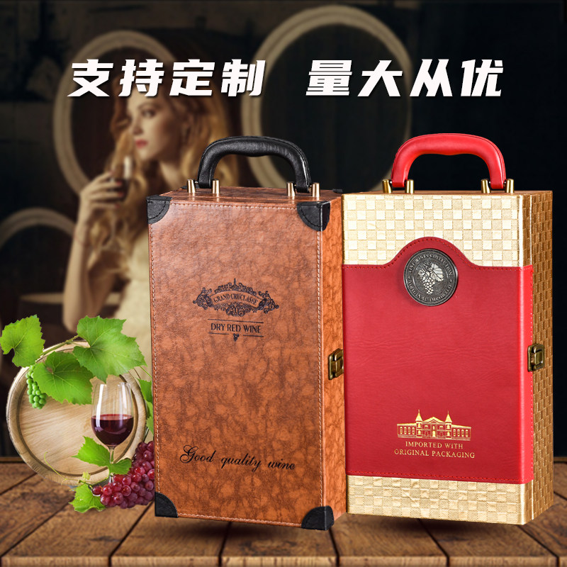 📚 高档双支通用红酒礼盒两瓶装葡萄酒箱定制2支装加宽红酒包装皮盒