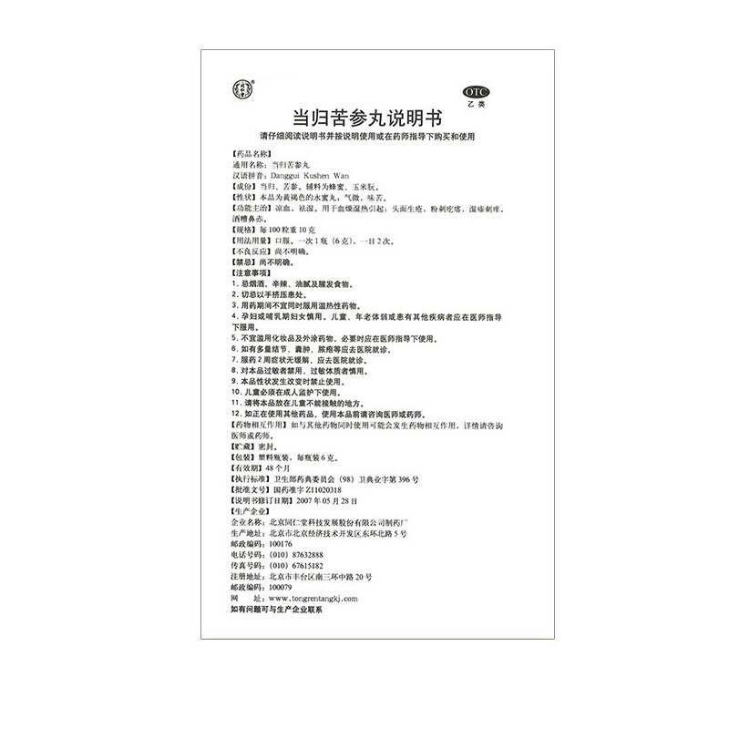 📚 同仁堂当归苦参丸6g*6瓶/盒凉血祛湿 粉刺疙瘩湿疹刺痒酒糟鼻赤