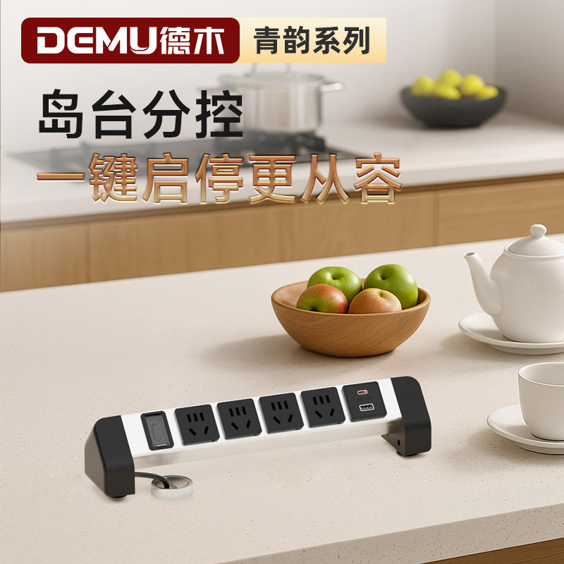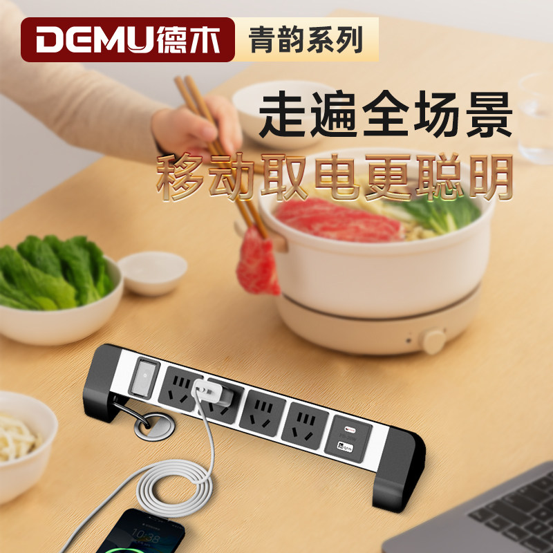 📚 德木桌面多插位插排 家用厨房usb快充防雷排插插板带线插座pdu