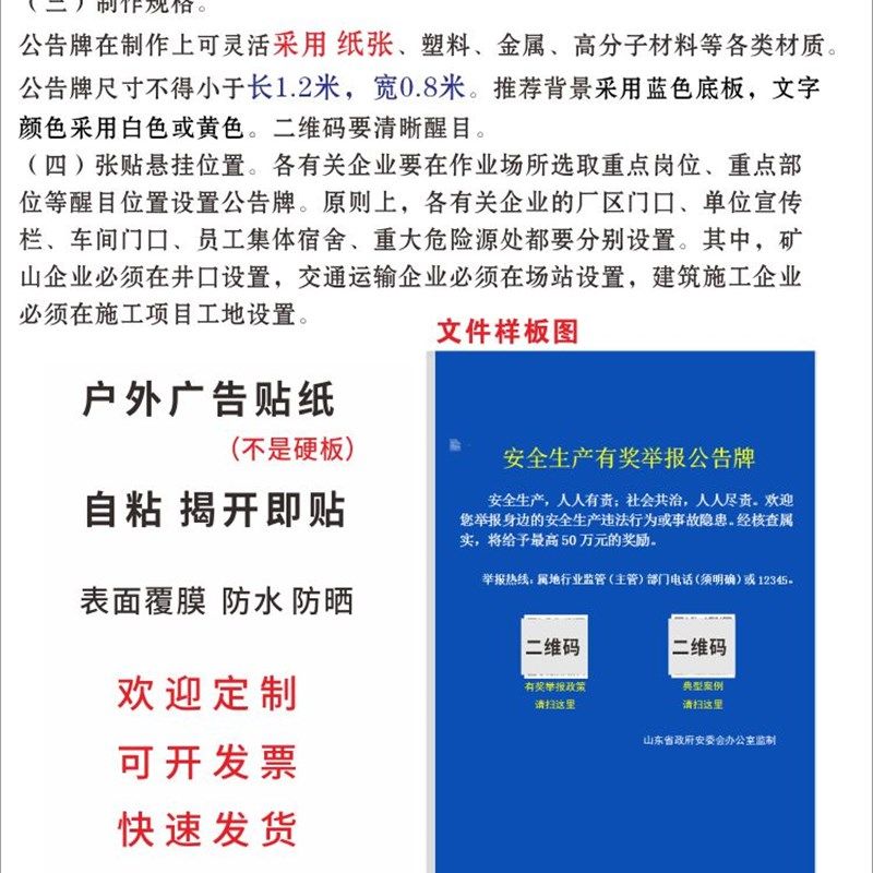 📚 安全生产有奖举报公告牌安委会监制墙贴自粘贴纸车队企业定制贴画