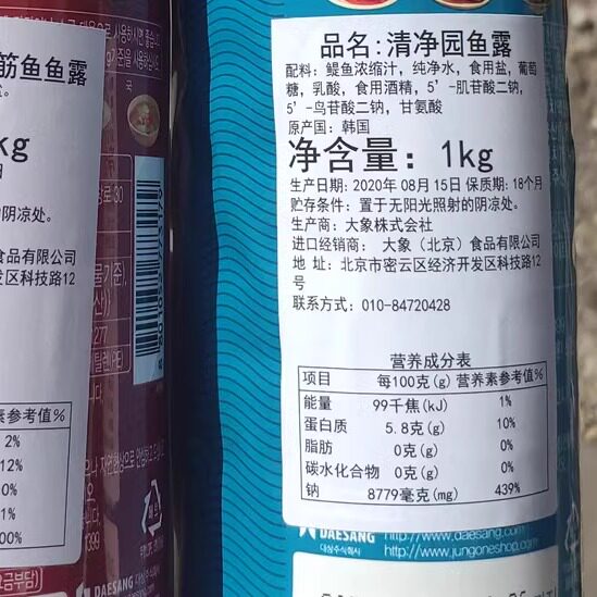 📚 包邮清净园鱼露/玉筋鱼1kg韩国进口泡菜用做辣白菜银鱼海鲜汁