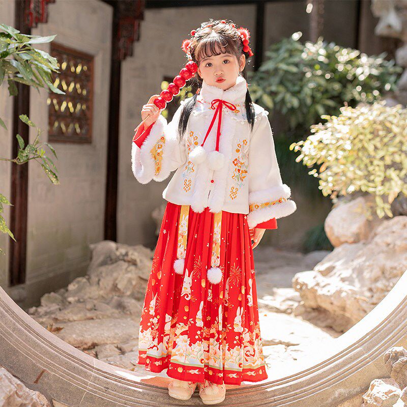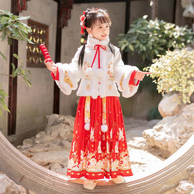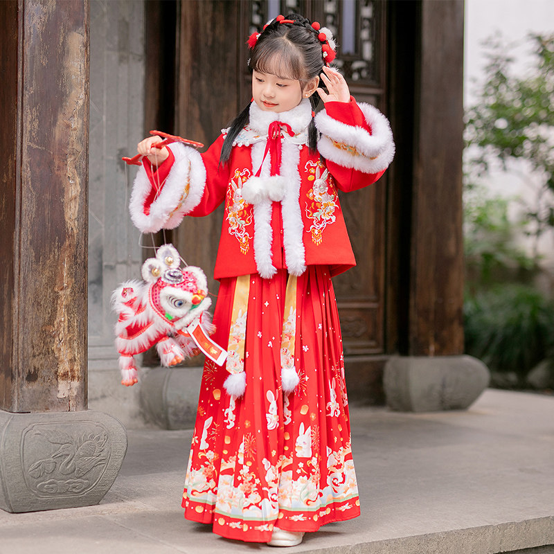 📚 汉服女童明制马面裙套装秋冬装儿童加绒加厚高端中国风古风拜年服
