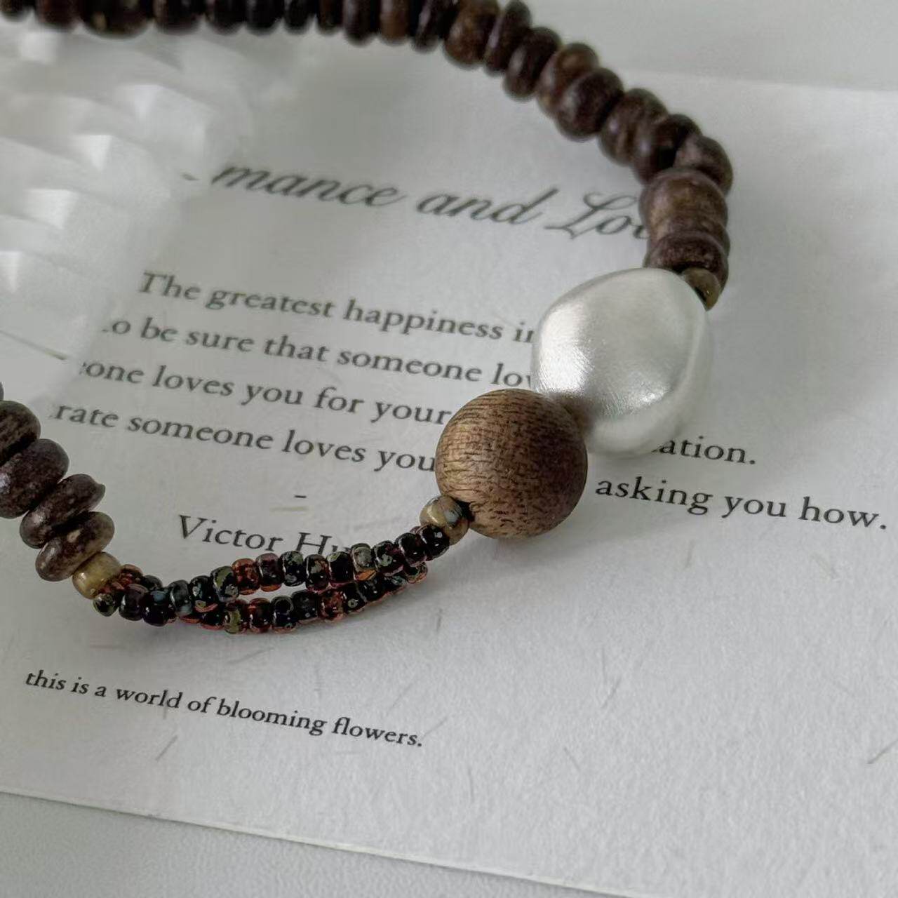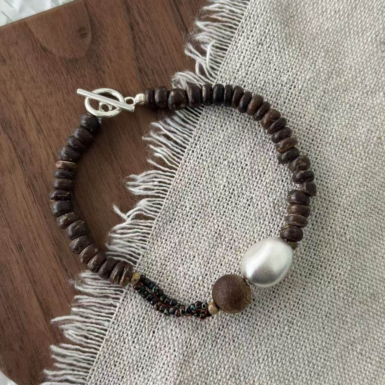 📚 眼观S925银新中式风国风设计感不规则古法银珠椰壳手串精致小众款
