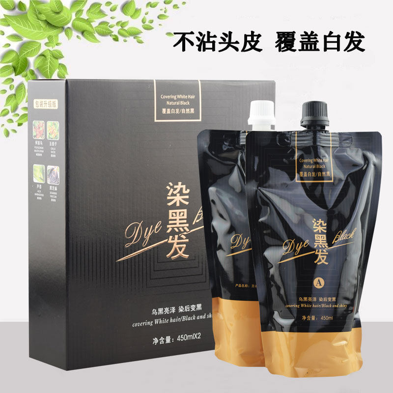 📚 圣迪伦黑大王智能黑发霜染发膏植物不沾头皮染发剂自然黑色黑油