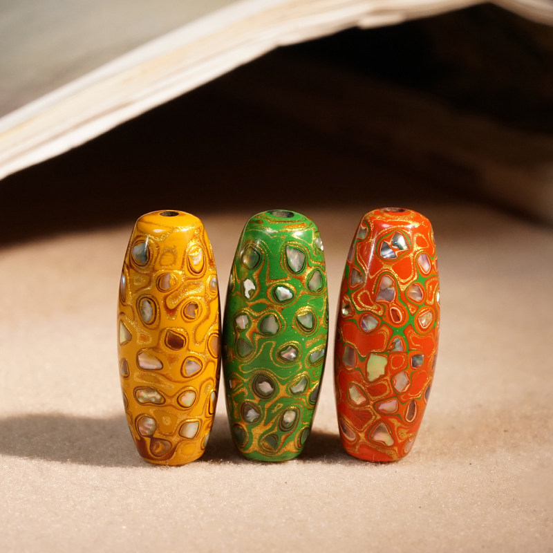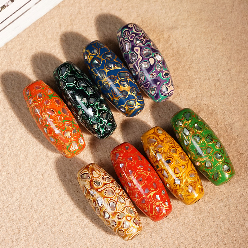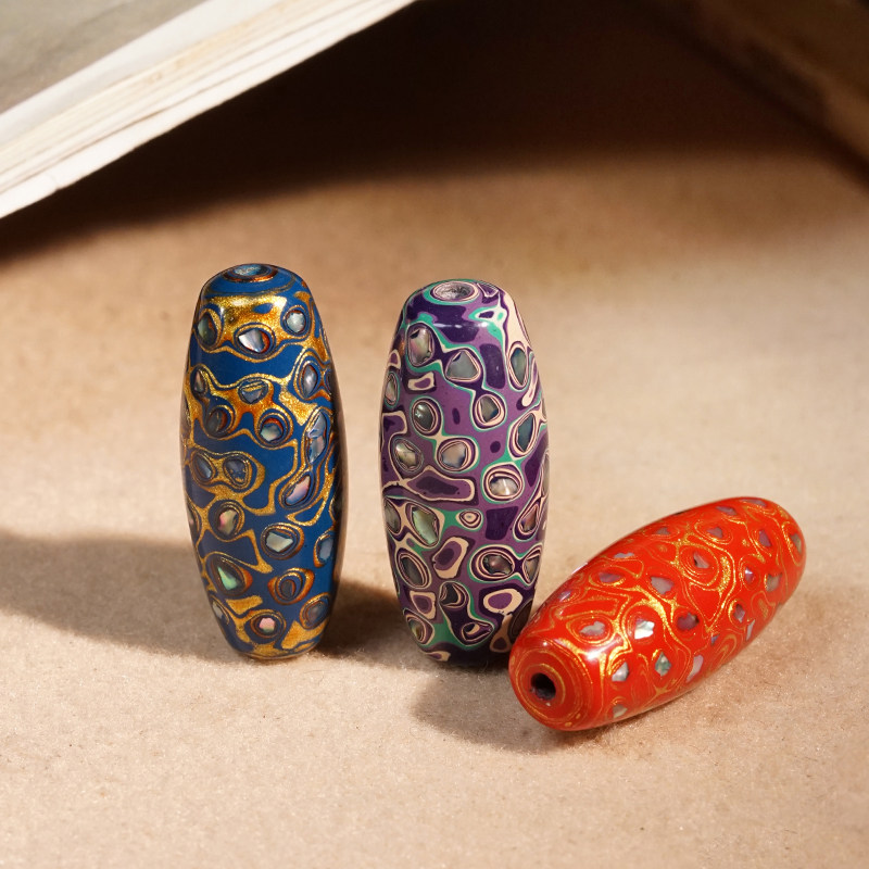 📚 大漆2.8cm小天珠DIY手工饰品配件多色可选装饰珠菠萝犀皮漆螺钿