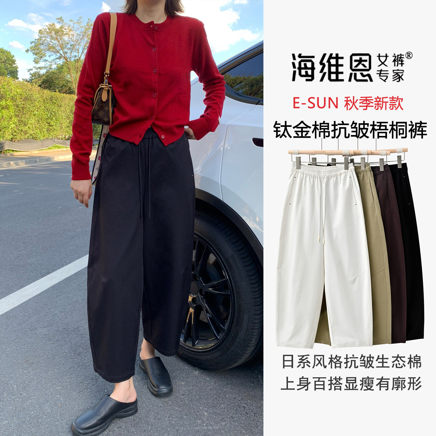 📚 seawhen海维恩 秋季新款百搭抗皱耐磨茧型显瘦九分梧桐裤女3548-A