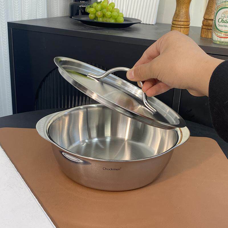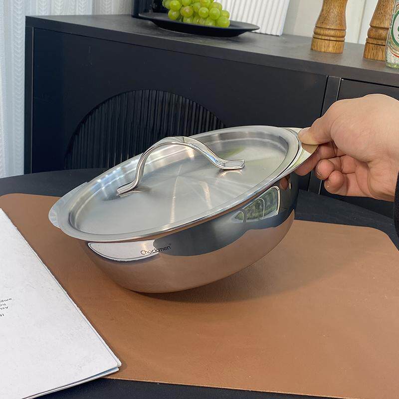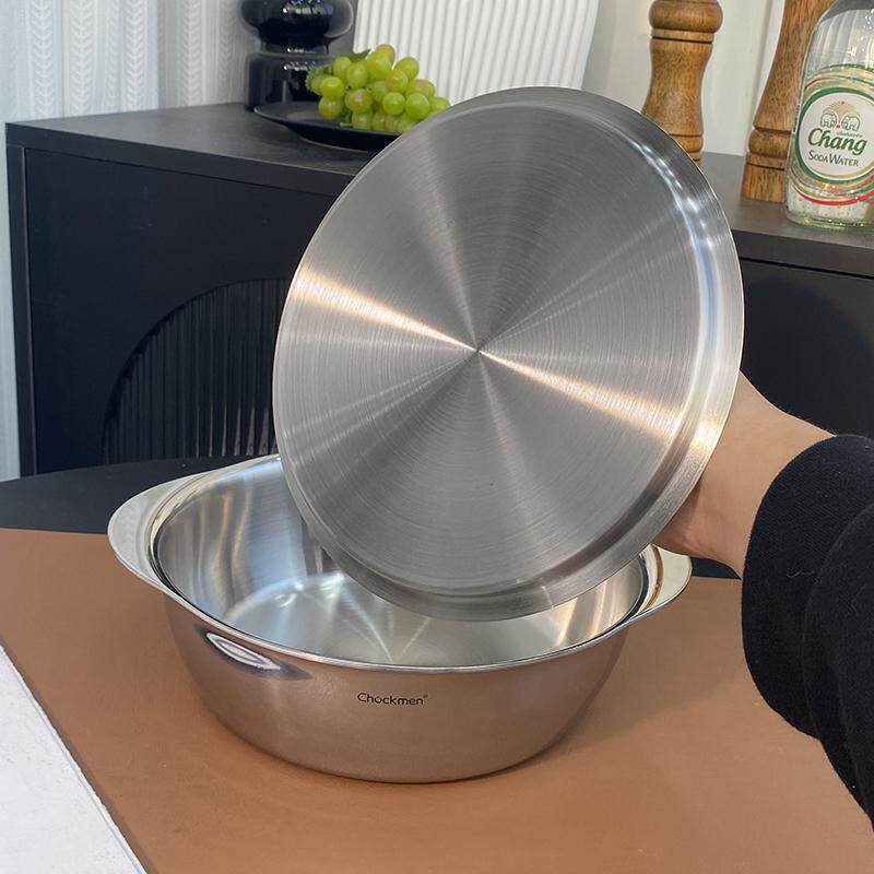 📚 Chockmen 18-10不锈钢带耳盆三层钢加厚火锅盆水煮鱼盆电磁炉可用