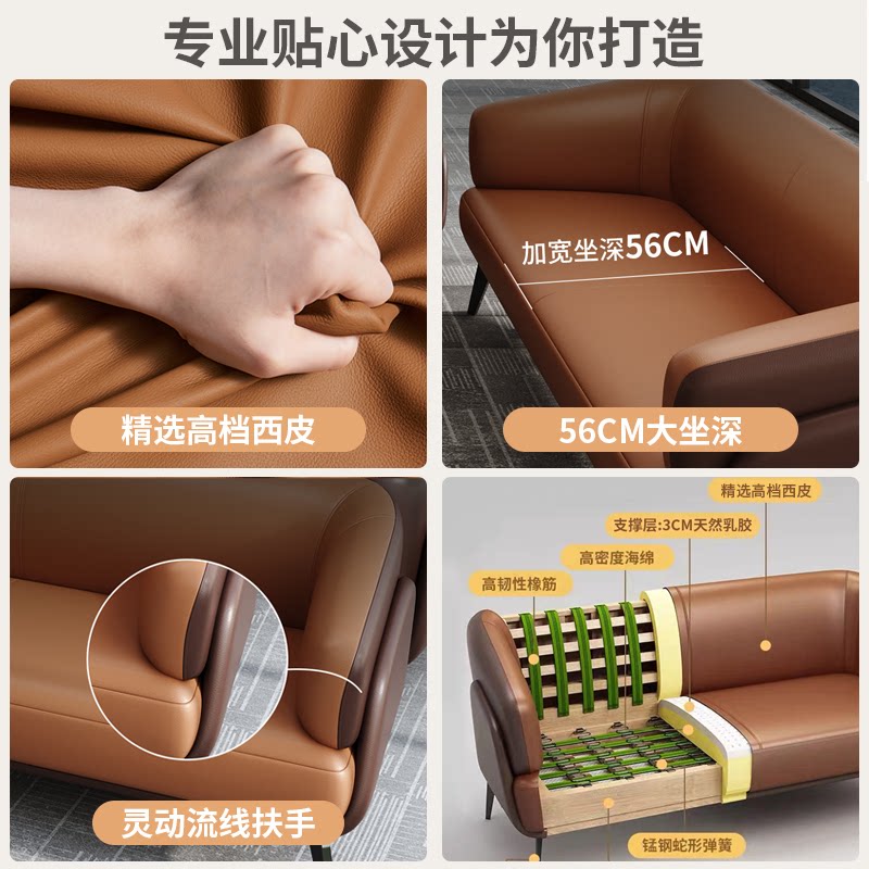 📚 辅导班接待会客沙发售楼处茶楼会所商务洽谈休闲卡座土黄色沙发
