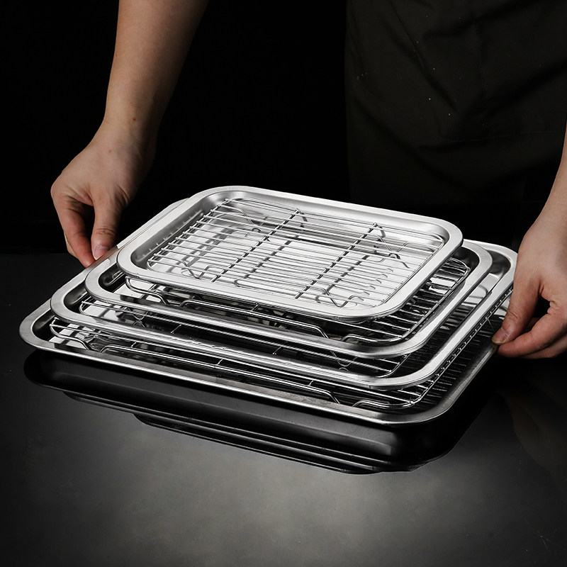 💥美食新宠!食品级不锈钢方盘带网控油架,让你的厨房瞬间升级💖