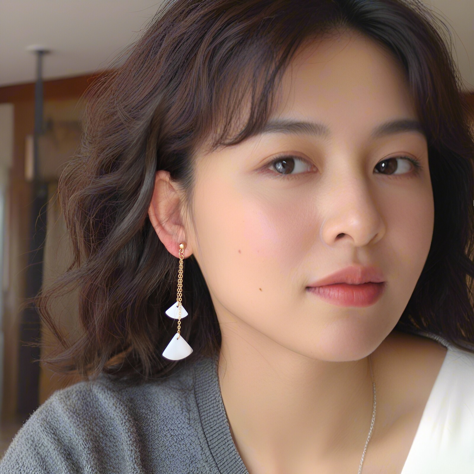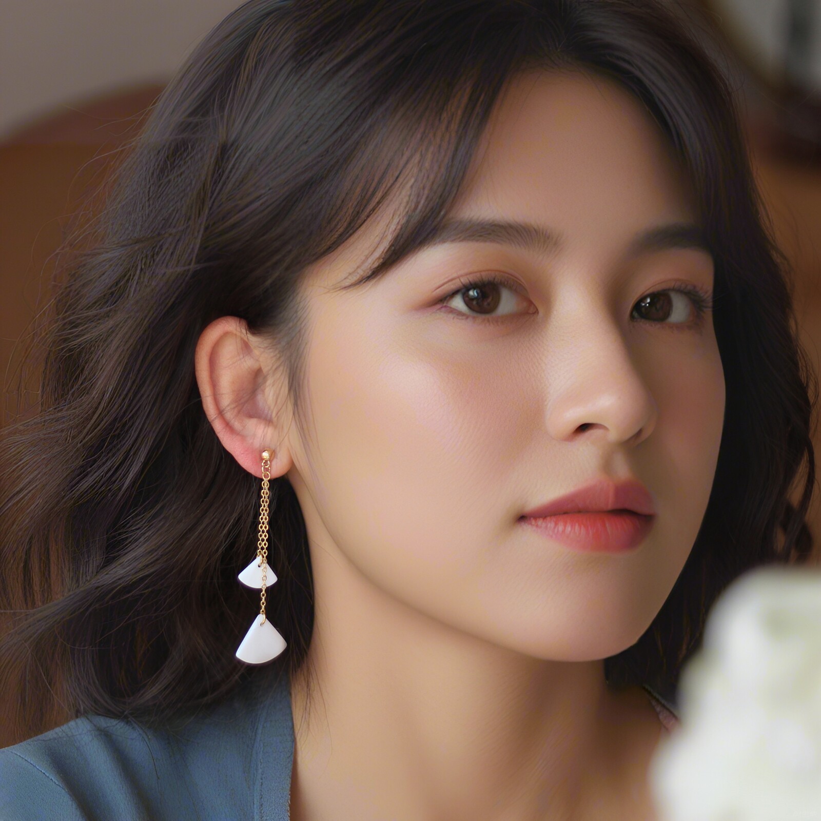 📚 深海手工打磨白贝长款耳环925银针长优雅公主耳夹轻奢珠宝度假风