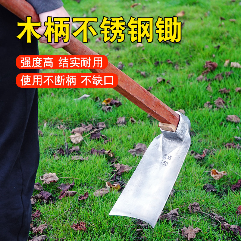 📚 不锈钢加厚锄头除草种菜挖土翻地开荒神器多功能农用户外开山锄头