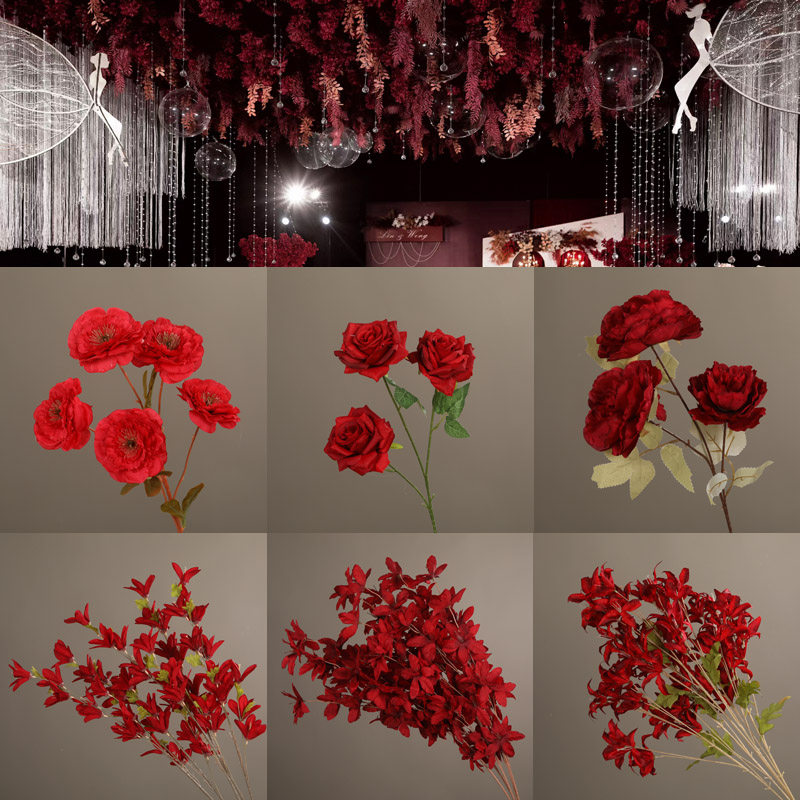 📚 新款婚庆仿真绢花婚礼堂红色系diy吊顶花材装饰布置洋牡丹仿真花