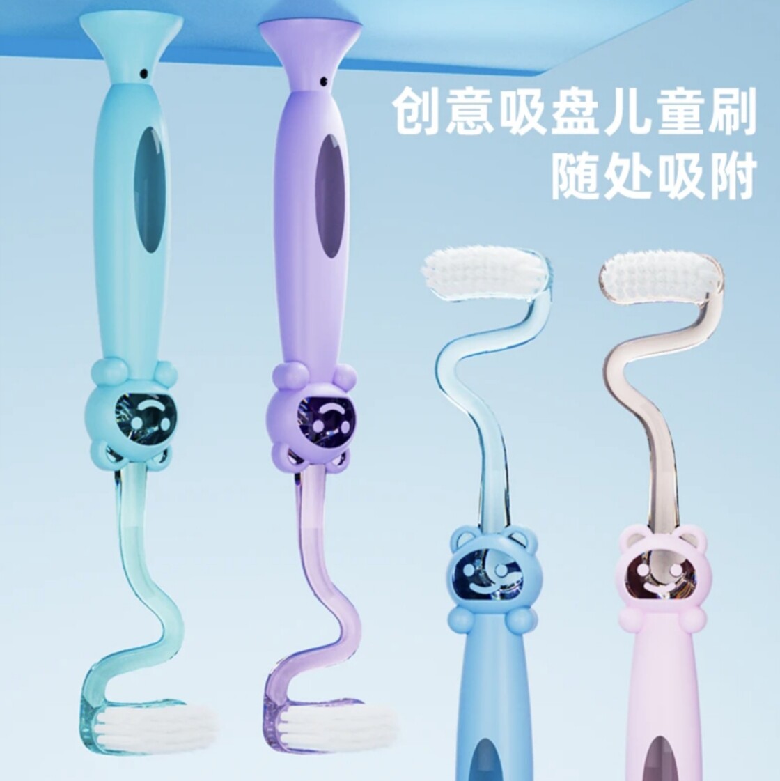 📚 儿童S型科学竖刷超细软毛牙刷护齿护龈洁牙带吸盘可直立轻巧便携