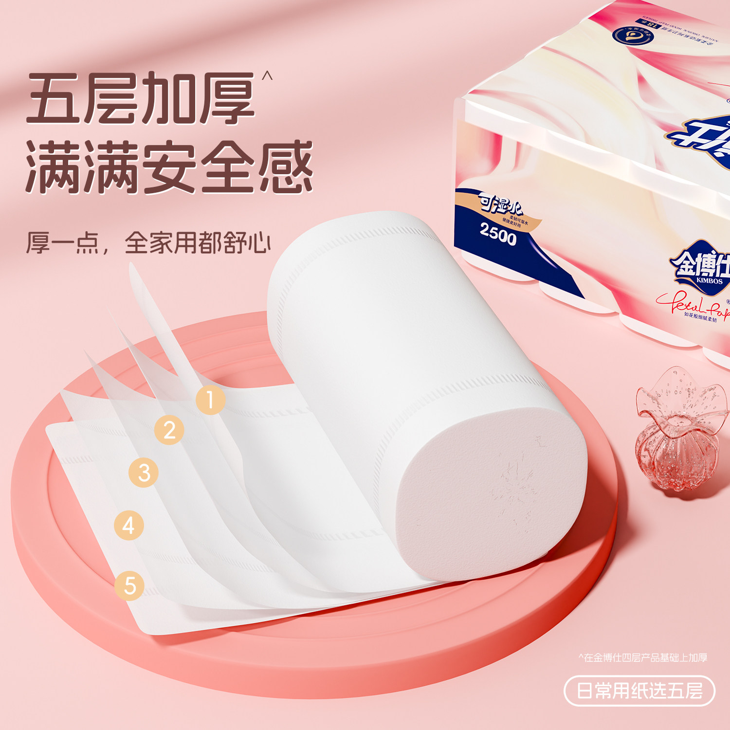📚 金博仕5斤18卷原生卷纸卫生纸五层加厚家用实惠装卷筒纸厕所纸巾