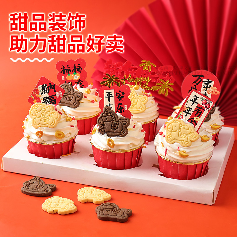 📚 2026新年饼干蛋糕装饰小马造型摆件马上发财吉福字牌甜品烘焙点缀