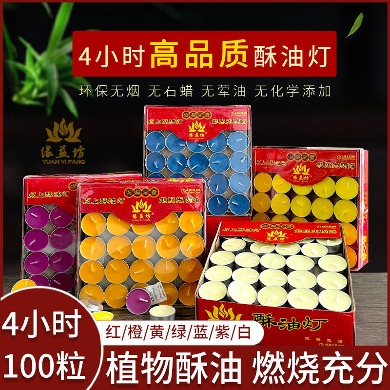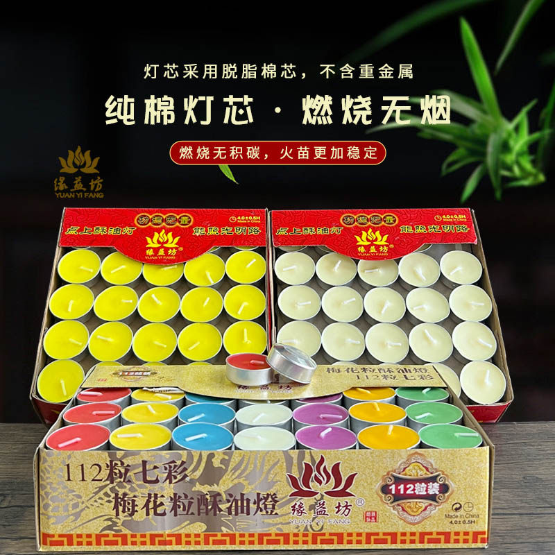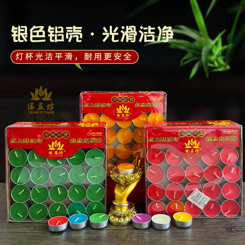 📚 铝壳4小时酥油灯七彩色无烟蜡烛112粒供佛家里寺庙点灯100梅花粒