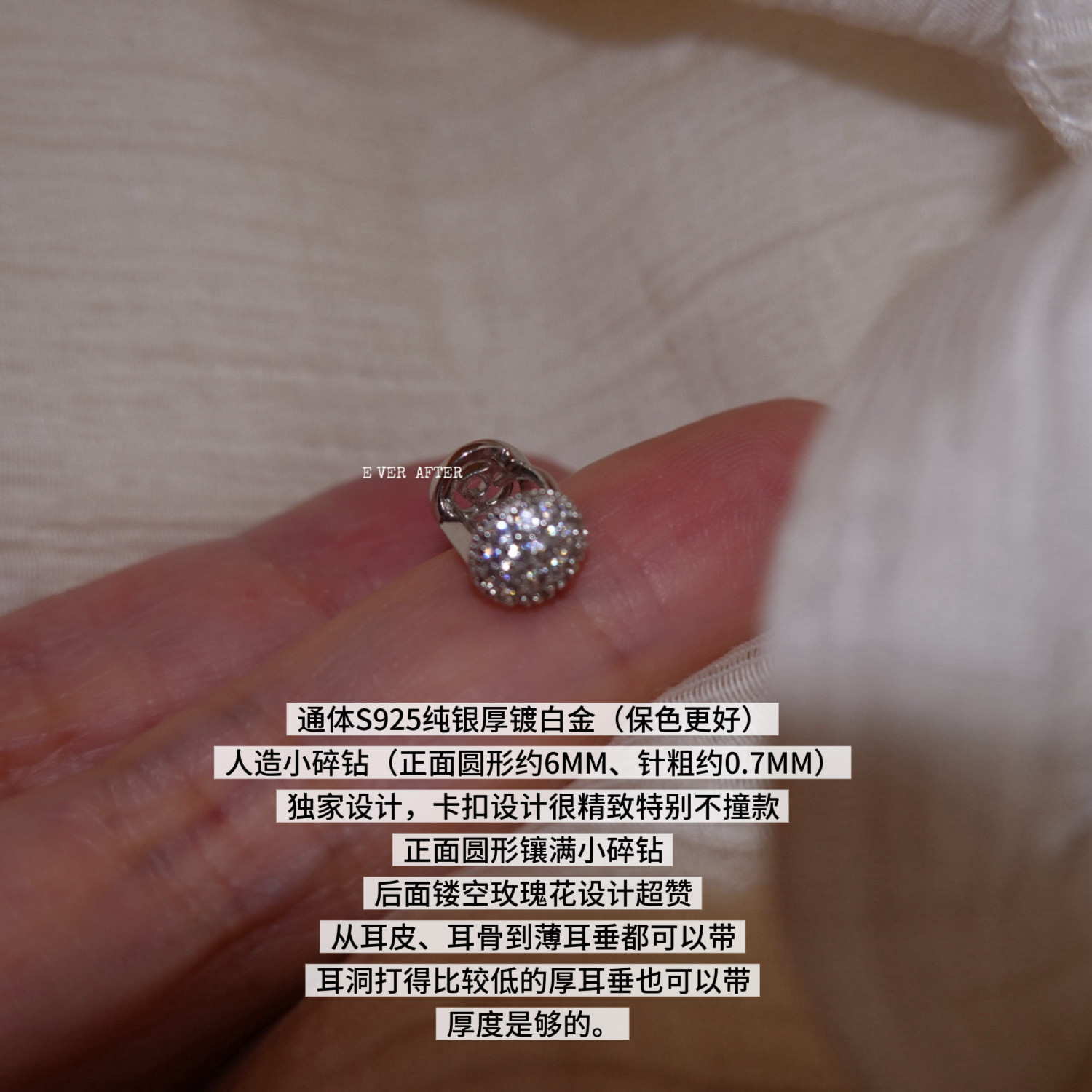 📚 单只售爆闪耳皮钉通体纯银轻奢满钻圆形小耳圈耳骨钉边缘耳廓耳环