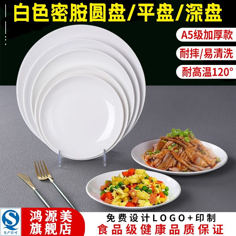 📚 圆盘密胺浅盘圆形平盘子盖浇饭盘塑料餐具自助餐盘快餐炒菜盘商用