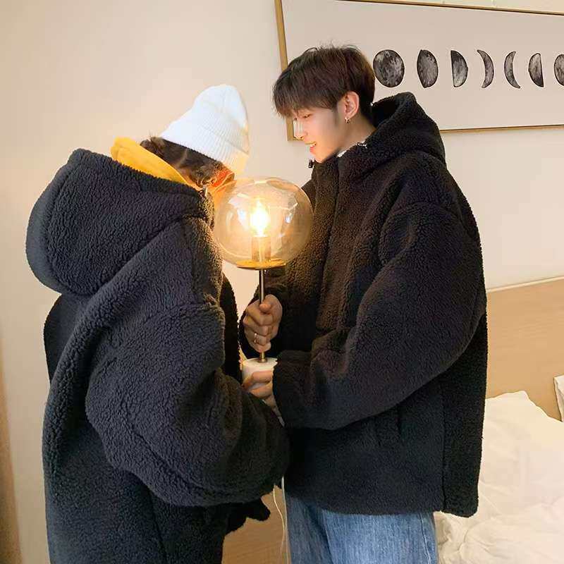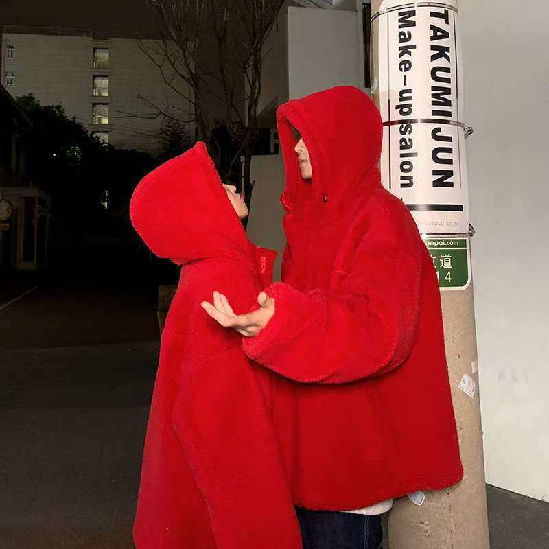 📚 特大码300斤过年情侣装红色ins羊羔绒冬季保暖外套卫衣男女装棉衣