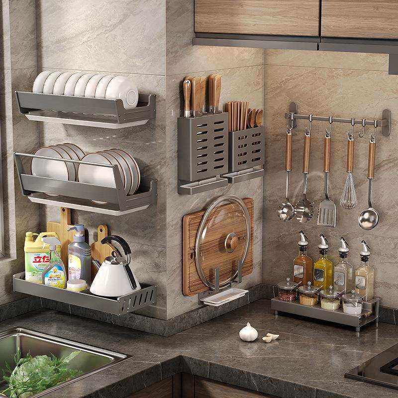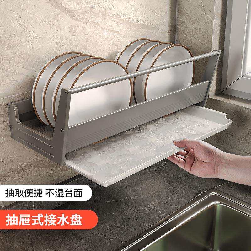📚 厨房碗碟收纳架太空铝置物架挂墙壁挂式沥水架放碗架盘子架挂篮