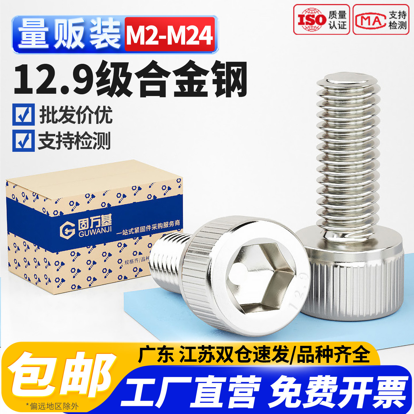 📚 固万基盒装12.9级镀镍高强度内六角螺丝钉杯头螺栓杆螺钉M2-M10mm