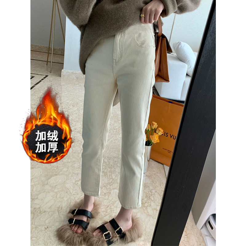 📚 孕妇牛仔裤子女九分秋冬加绒加厚外穿打底裤冬装杏色烟管直筒长裤