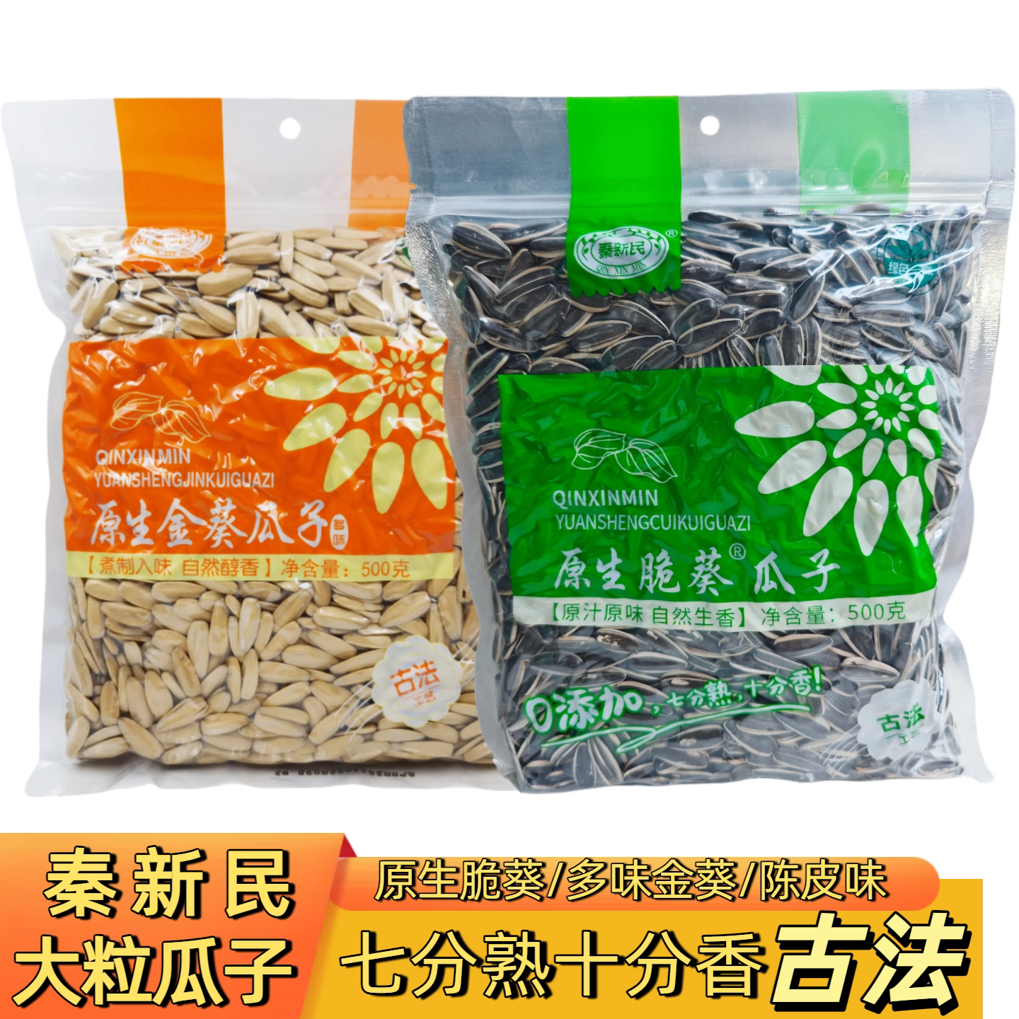 📚 秦新民原生脆葵陈皮多味葵白葵花籽500克大颗粒炒货五香零食年货