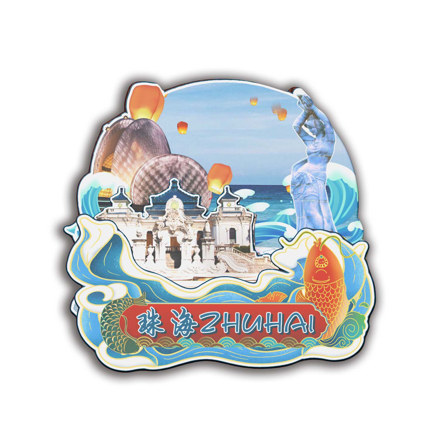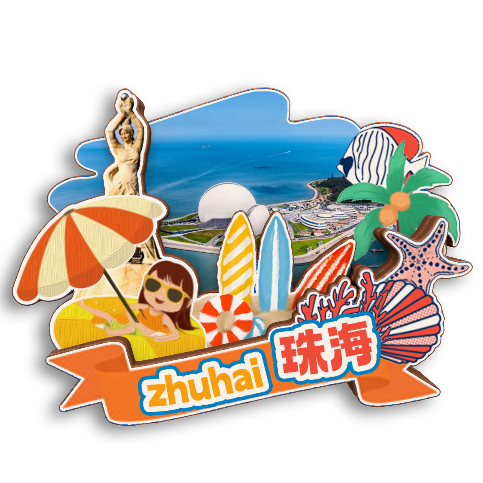📚 原创广东珠海庙湾岛外伶仃岛圆明新园冰箱贴纪念品木质文创旅游