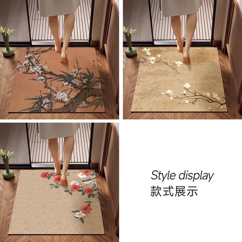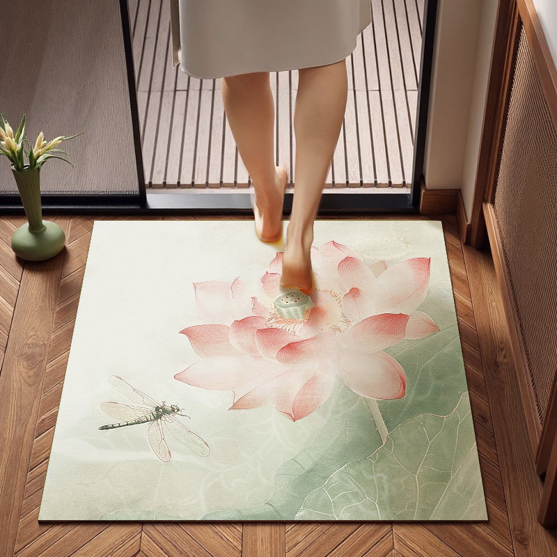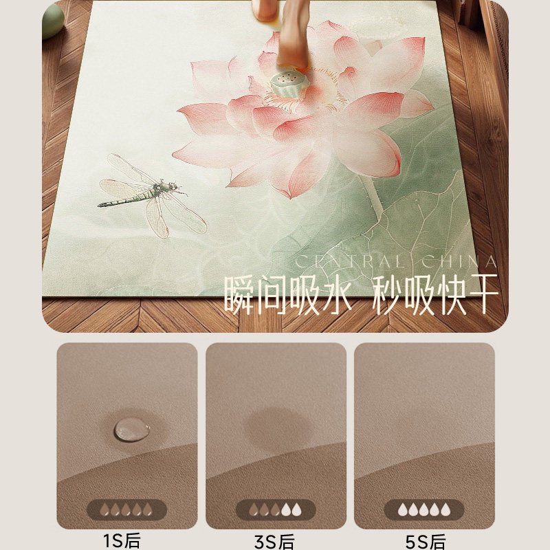 📚 新中式正方形浴室地垫硅藻泥吸水垫卫生间防滑脚垫门口荷花小地毯